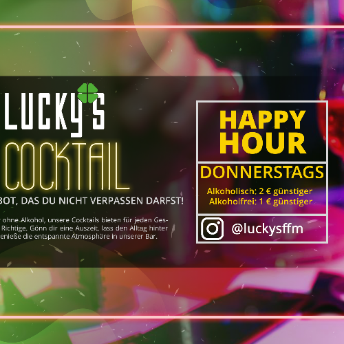 Donnerstags im Luckys ab 20 Uhr sind alkoholfreie Cocktails 1 € günstiger - alkoholische sogar 2 € günstiger